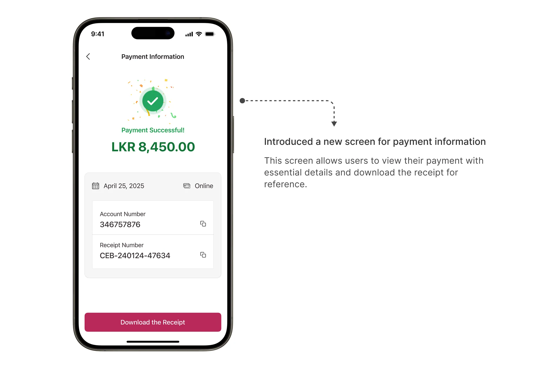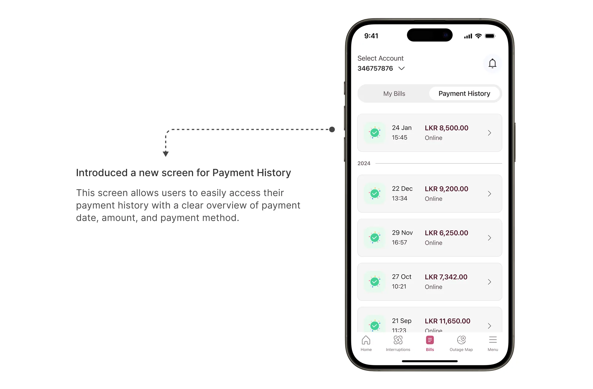 - Improved Payment History:Users can now easily scroll through their entire payment history with a clear layout, view full payment details, and download receipts for future reference.