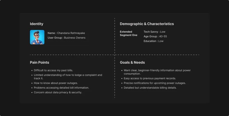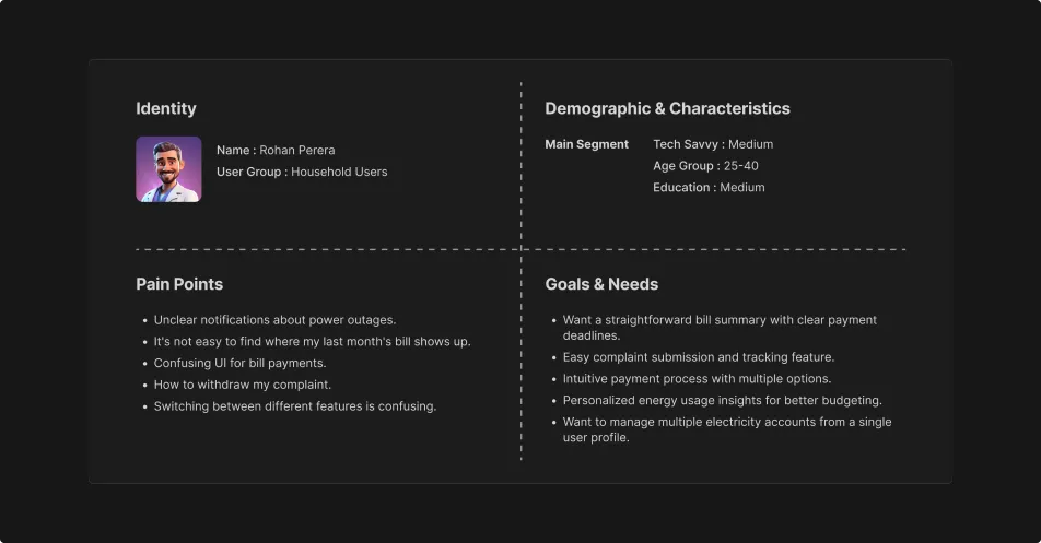 Mainly I segmented our personas into three segments. These personas provide a deep understanding of the specific pain points, goals, and needs of each user groups. So, it helps me to tailor our design solutions more effectively to improve their interaction with the CEB Care app.