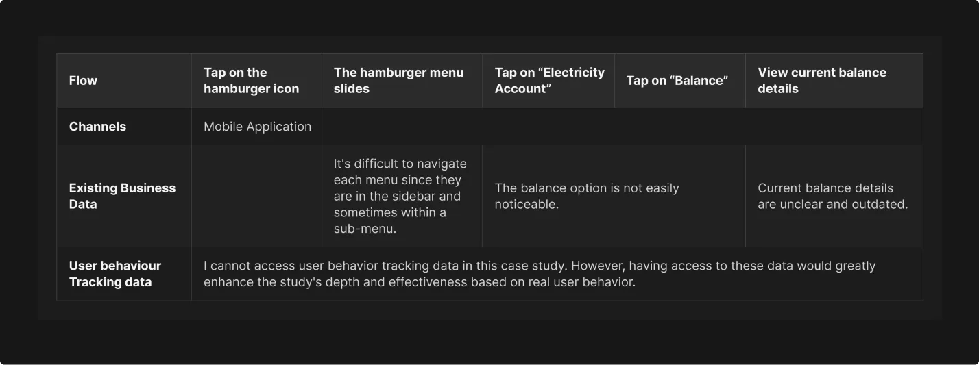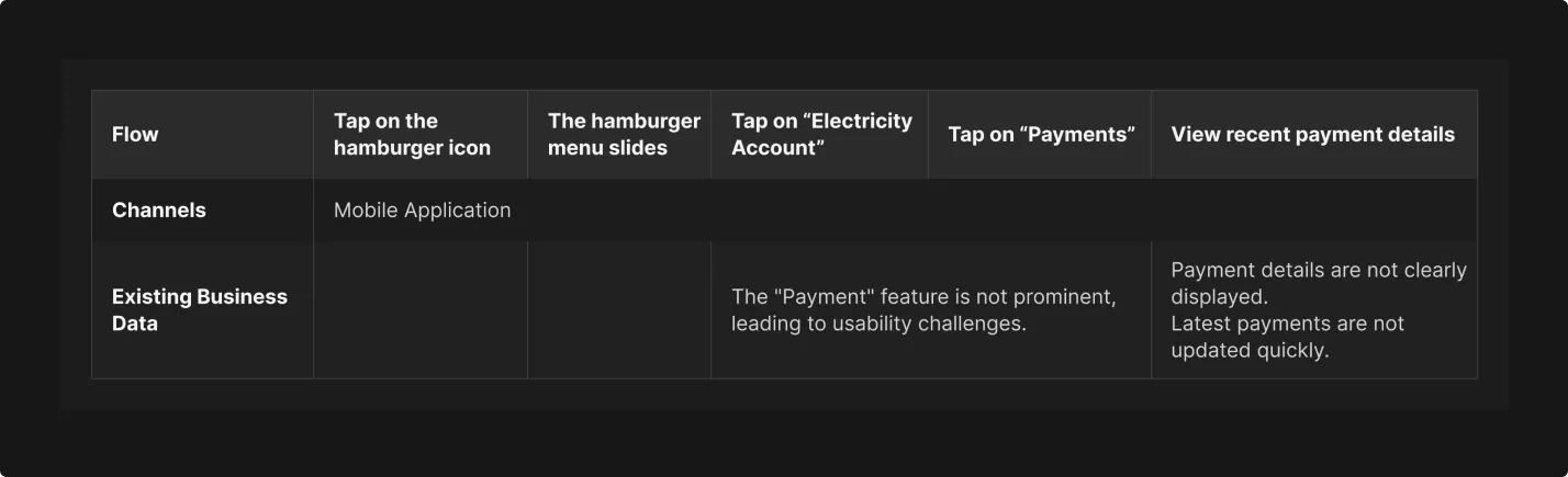 Here, I created the User Experience Matrix by analyzing the user journeys of the existing solution blueprint. This UX Matrix gives me a deeper understanding of key features to be improved with our design solution.