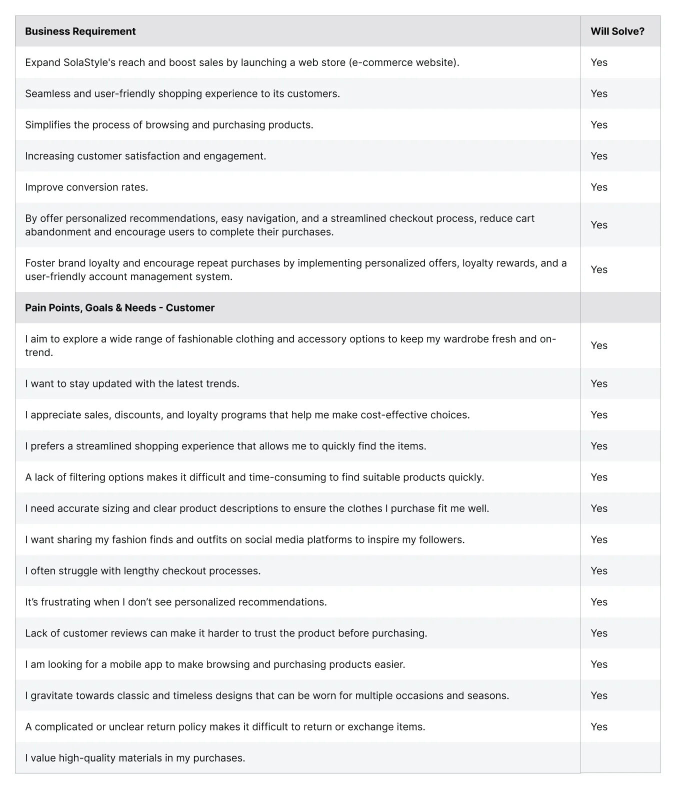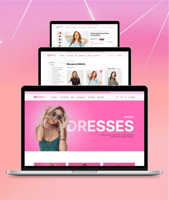 SolaStyle is a well-established retail brand specializing in clothing brand for women. With a strong online presence, they aim to expand their reach and boost sales by launching a shopping eCommerce website. SolaStyle's business case revolves around leveraging the power of a well-designed eCommerce website to enhance customer experience, drive conversions, and foster brand loyalty.